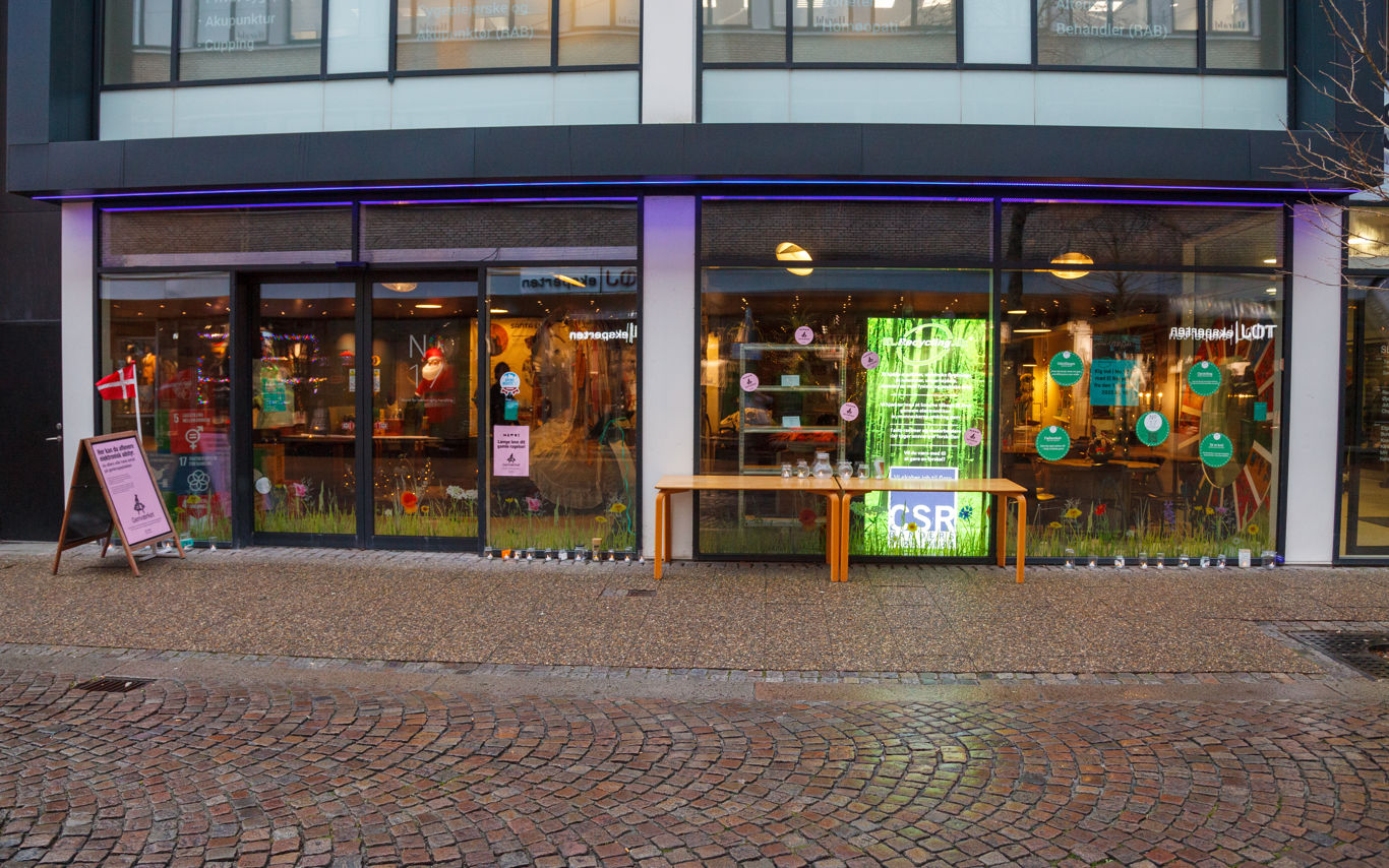 Her kan du kigge ind til udstillinger om alt fra affaldssortering til skovrejsning, hente overskudsmad fra supermarkeder, bytte dig til nyt i byttebiksen eller få inspiration i det åbne værksted.